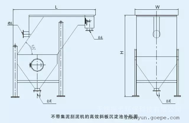 a.普通高效斜板沉淀池 此类普通高效斜板沉淀池不含刮泥机,适用于污水中污泥负荷较小,污泥沉降性能好的水质。污泥通过下端泥斗浓缩后排出。