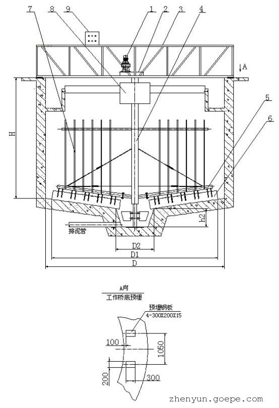 参数ZXN-4 ZXN-5 ZXN-6 ZXN-8 ZXN-10 ZXN-12 ZXN-14 ZXN-16 ZXN-18 池径D(m) 4 5 6 8 10 12 14 16 18 刮臂直径D1(m) 3.6 4.6 5.6 7.6 9.6 11.6 13.6 15.6 17.6 池边深度H(m) 3.2 3.6 4.0 4.4 4.8 集泥斗深度h2(m) 0.5 0.6 集泥坑上部直径